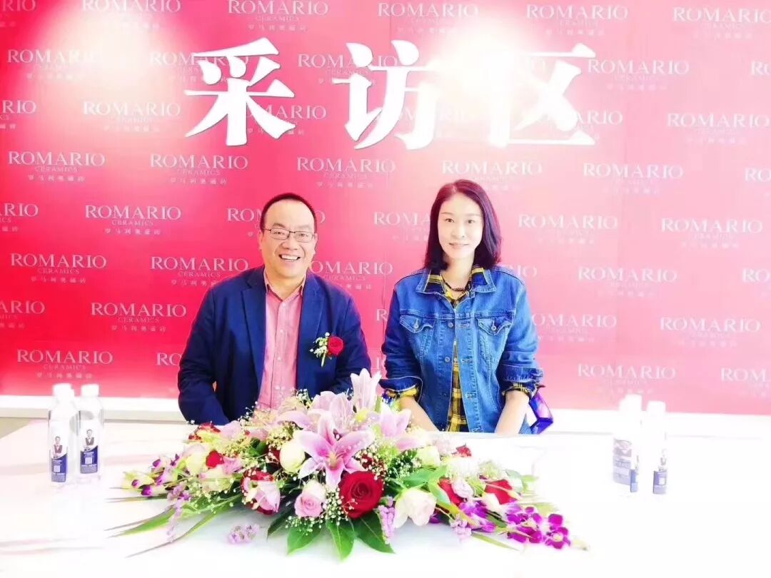 罗马利奥磁砖营销常务副总经理兼工程部总经理蔡小林与女排世界冠军赵蕊蕊现场签售